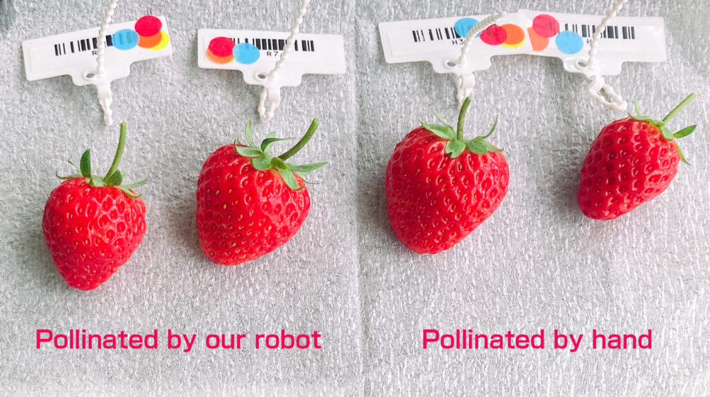 This technology will bring stable production of beautiful strawberries to indoor vertical farms, which honeybees can’t achieve.